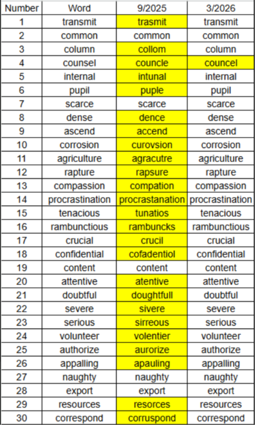 Here is a side by side comparison of the same words spelled in September and then in March of the same school year in 5th grade by one of my students. The improvement is pretty remarkable. These were all words taught in the Word Mapping Project curriculum. It shows the words are sticking! In March, he only spelled one out of the 30 words wrong. In September, he spelled only 5 correctly.